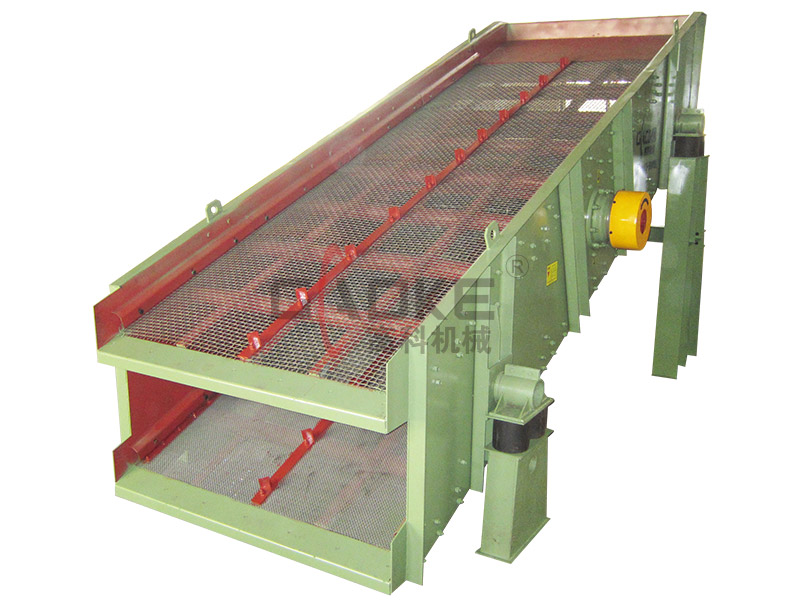 香蕉型振動篩篩箱近似于香蕉形狀,運動軌跡為橢圓,篩面擁有20°傾角,物料進入篩面后在振動力的作用下迅速前進、松散透篩,完成篩分作業(yè)。高科機械GKXJ系列香蕉型振動篩使用激振器作為振動源,激振力大小可調整,篩分精度高,處理能力強。